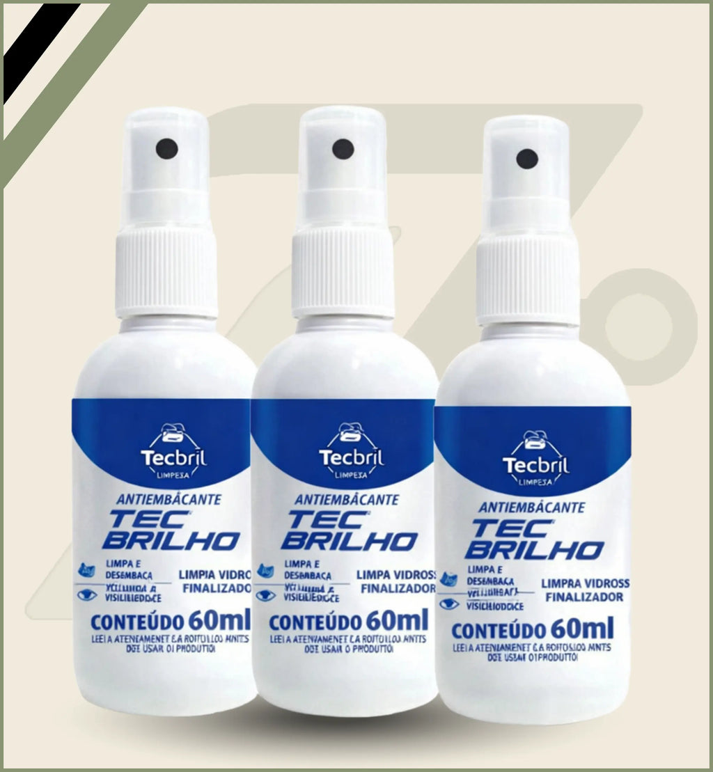 O Antiembaçante TecBrilho foi desenvolvido para limpar e proteger vidros e espelhos , criando uma camada antiembaçante invisível que mantém a superfície sempre clara, limpa e com brilho por muito mais tempo.